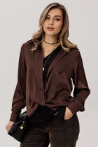 Блузка из текстильного полотна лен с вискозой,прямого силуэта. Длинный рукав со спущенной линией плеча, по низу манжет с разрезом. По борту цельновыкроенная планка с застежкой на пуговицы, по горловине отложной воротник со стойкой. По бокам разрезы.