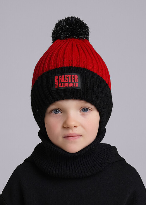 Clever Шапка детская CLE 433843ап флис чёрный/красный