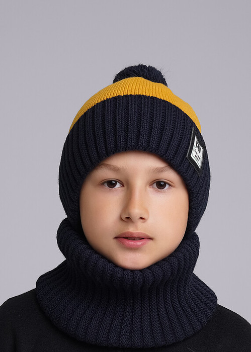 Clever Шапка детская CLE 433849ак флис горчичный/т.синий
