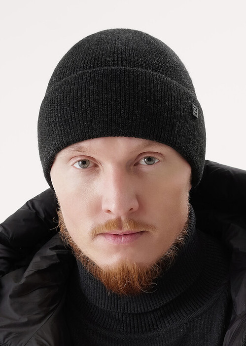 Шапка мужская с отворотом, с подкладом из флиса. Выполнена из высококачественной пряжи, декорирована стильной нашивкой. Станет не только отличной защитой от холода, но и модным аксессуаром.
