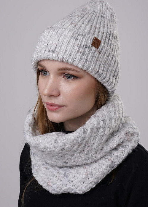 Снуд-труба с фактурным переплетением из фасонной объемной пряжи с добавлением мохера.