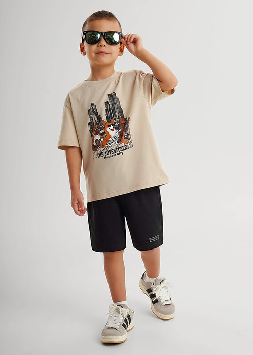 Шорты средней длины, комфортная посадка, регулировка по талии внутренним кипером, удобные карманы, стильная нашивка по низу. Сочетай модель с футболками и лонгсливами из новой коллекции и будь в тренде!