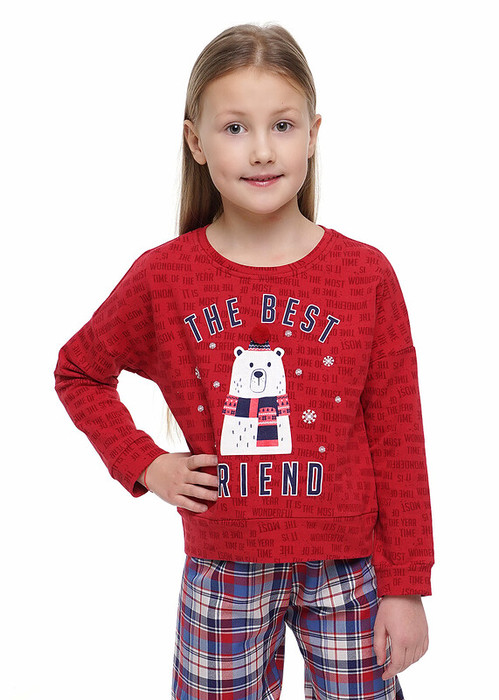 Совместные покупки Курган Детская одежда Джемперы, свитеры — Clever Свитшот для девочки CLE LSW18-730/1 красный/т.красный