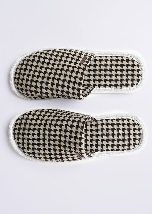 Тапочки для дома с закрытым носом на толстой подошве из джерси. Декорированы металлической нашивкой