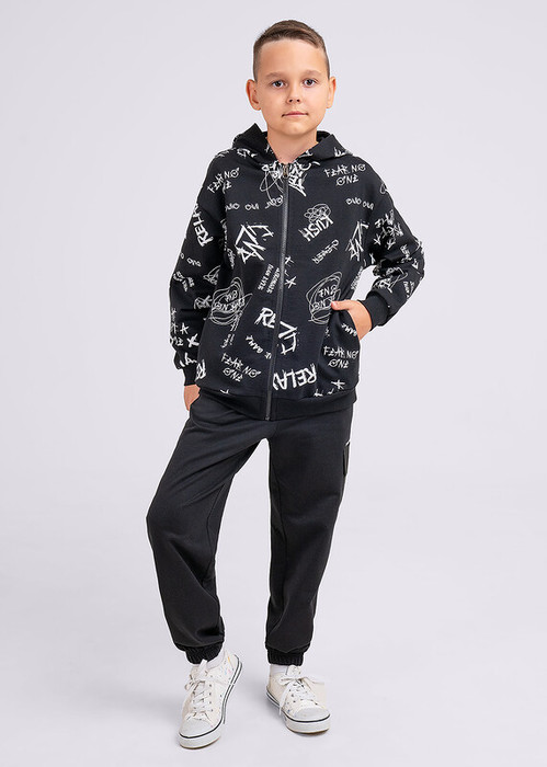 Совместные покупки Курган Детская одежда Кофты, кардиганы — Clever Толстовка детская для мальчика CLE 746805/88фн чёрный/молочный