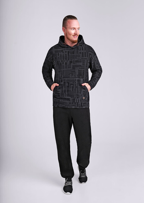 Мужская комбинированная утепленная толстовка с капюшоном с регулируемым шнуром. Модель дополнена вместительным карманом-""кенгуру"" и силиконовой нашивкой. Удобный и практичный вариант толстовки в холодное время года.