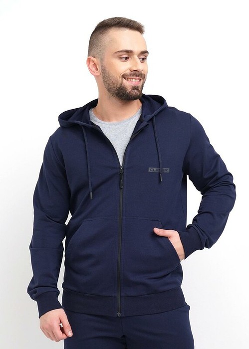 Толстовка с застежкой-молнией по переду на капюшоне из плотного трикотажа футера. Рукава втачные с манжетой, по низу пояс. На капюшоне люверсы со шнуром и наконечниками. Для функциональности и удобства спереди карман-кенгуру, для повседневной носки.