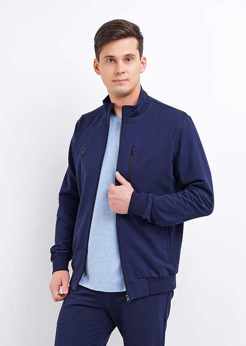 Модная куртка на молнии с воротником-стойкой из плотного трикотажного полотна будет отличным дополнением мужского гардероба. Куртка имеет функциональные карманы и оформлена стильной имиджевой нашивкой.