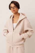 Куртка спортивная из трикотажного полотна велсофт, на молнии. По горловине стойка. Спереди карманы на молнии с закреплением мешковины. Длинный рукав со спущенной линией плеча, нашивка. По низу рукава и низа изделия окантовка.