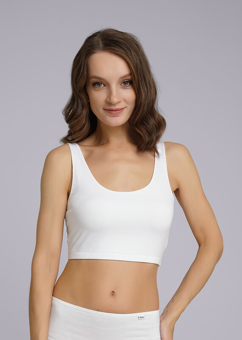 Майка-топ женская из эластичного хлопкового полотна. Двойной перед. Широкая бретель.