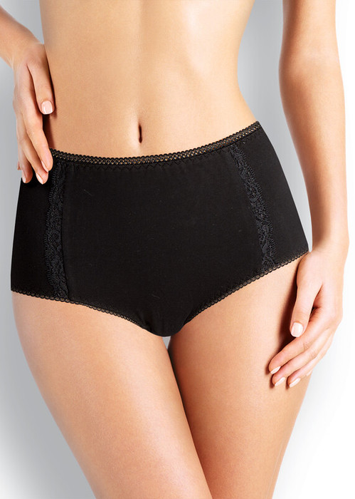 Трусы макси утяжка женские из плотного эластичного хлопкового полотна. По переду отделка кружевом и двойной слой основного полотна. Обработка краев - ажурной резинкой с фестоном.