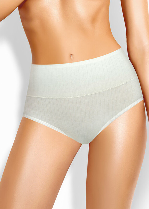 Трусы макси женские из эластичного хлопкового полотна. По талии широкий пояс с внутренней резинкой, обработка зубы. По ноге узкая резинка с застилом (сверху), на спинке средний шов по поясу.
