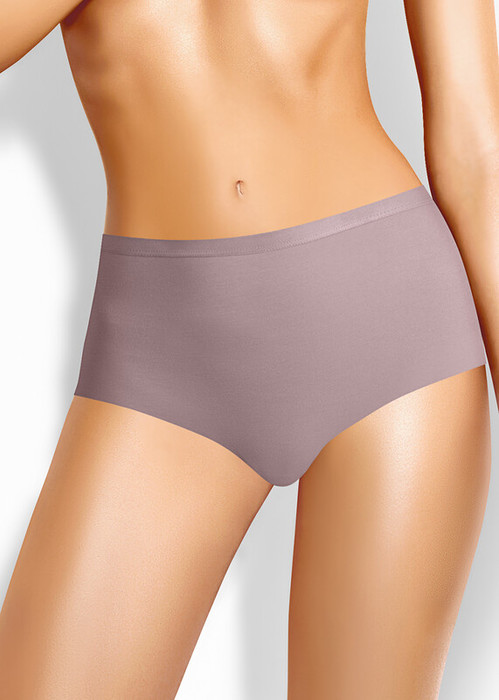 Трусы-макси женские из эластичного вискозного полотна. Обработка по талии - жаккардовая резинка, по ноге - открытый срез.
