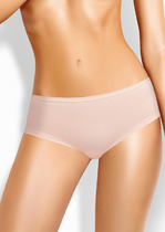 Трусы-шорты женские из эластичного хлопкового полотна. Спинка из эластичной сетки со средним швом. Обработка краев по талии - окантовка, по ноге переда - подгибка, по ноге спинки - узкое кружево.