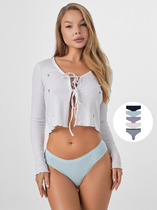 Трусы-шорты женские из эластичного хлопкового полотна. По спинке и бокам кружево. Обработка краев по талии - ажурная резинка с фестоном. Спереди бант.