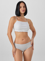 Трусы шорты из хлопкового полотна с добавлением эластана комфортной посадки. На детали переда и спинки широкое кружево. По поясу и ножке резинка с фестоном.