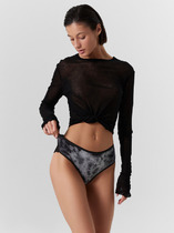 Трусы слипы женские из эластичного хлопкового полотна. Обработка краев по талии жаккардовая резинка, по ноге - полуокантовка. По переду и спинке- вставки из сетки, швы застилом.