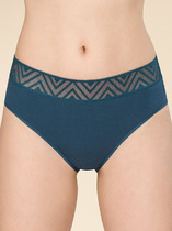 Трусы стринги женские из эластичного хлопкового полотна. Обработка краев по талии - жаккардовая резинка, по ноге - полуокантовка. Спереди боковые вставки из сетки.