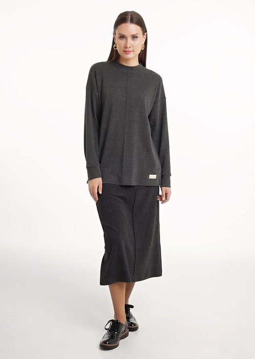 Vilatte Юбка миди с двумя разрезами из премиальной поливискозы с эластаном D26.1