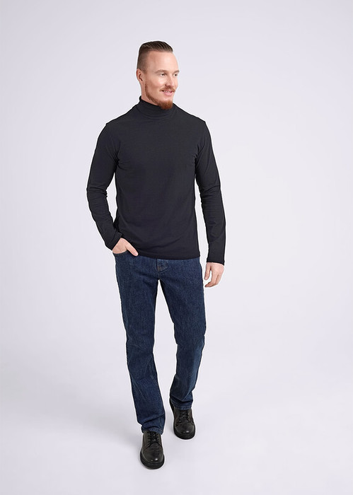 Базовый мужской лонгслив с длинным рукавом на воротнике стойке с загибом. Выполнен из дышащего хлопкового полотна. Лонгслив можно скомбинировать с брюками или джинсами. Отличное решение для похода на работу или встречи с друзьями.