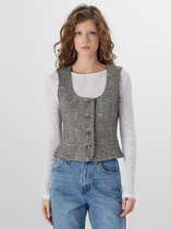 Жилет из трикотажного поливискозного полотна джерси, прямого кроя. Округлая горловина с обтачкой. По пройме подкройная обтачка. Спереди резы со шлицей и декоративными клапанами. По низу изделия потайной стежок.