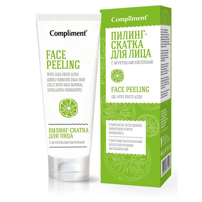 После применения пилинга-скатки Compliment с фруктовыми кислотами ваша кожа становится открытой для действия других полезных косметических средств. Эффективность косметики на коже, очищенной от омертвевших клеток, возрастает в несколько раз.