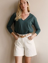 Джемпер женский из однотонного трикотажного полотна с эффектом "вытравка" с коротким втачным рукавом. Круглая головина изделия окантована бейкой.