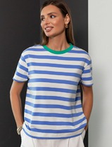 Vilatte Футболка из премиального хлопка с эластаном D49.989 белый-васильковый