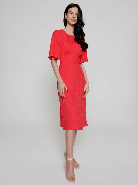 Красное платье-миди из вискозы высочайшего качества с глубоким фигурным вырезом на спинке – то, что нужно для эффектного выхода в свет. Платье подчеркивает талию и визуально моделирует силуэт. SILK TOUCH VISCOSE: премиальная вискоза «Ощущение шелка» подарит мягкость и комфорт на протяжении всего дня. · круглый вырез горловины· горловина и вырез спинки обработаны окантовкой· спинка с глубоким фигурным вырезом· midi· короткий рукав с широкими рюшами по краю· прилегающий крой по груди и у талии, свободная юбка· пришивной пояс фигурной формы со сборкой по лифу· моделирующий эффект· застежка по горловине спинки на одну пуговицу· потайная молния· Silk touch viscose· упругое и эластичное полотно из вискозы высочайшего качества· атласный блеск и леопардовый узор· сохранение формы и цвета при соблюдении рекомендаций по уходу· для тех, кто хочет быть в центре внимания!