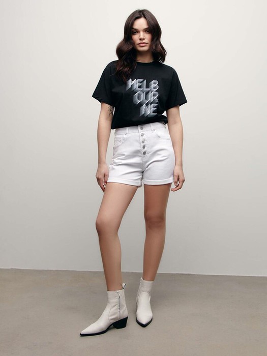 Белые джинсовые шорты A-силуэта с высокой посадкой на пуговицах CON-446 - must have в летнем гардеробе. Плотные и вместе с тем дышащие благодаря высокому содержанию хлопка, эти шорты прекрасно держат форму и гарантирую легкость и комфорт даже в самый жаркий день.