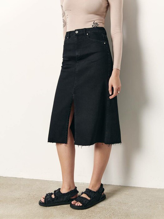CONTE ELEGANT Юбки CONTE CON-611 Джинсовая юбка-midi с разрезом и необработанным