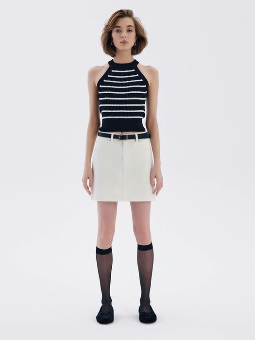 Джинсовая юбка А-силуэта с необработанным краем станет основой для множества индивидуальных образов и стильных идей.