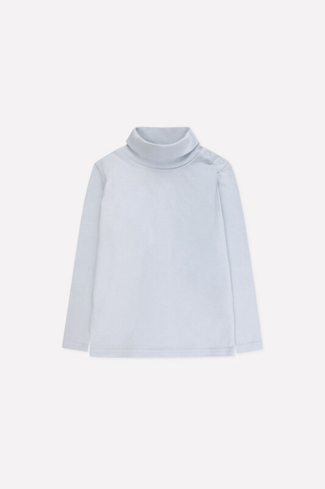 Однотонная детская водолазка из хлопкового трикотажа интерлок пенье. Длинные рукава. Высокая горловина с отворотом, в области плеча предусмотрена застежка на кнопки-ободок.