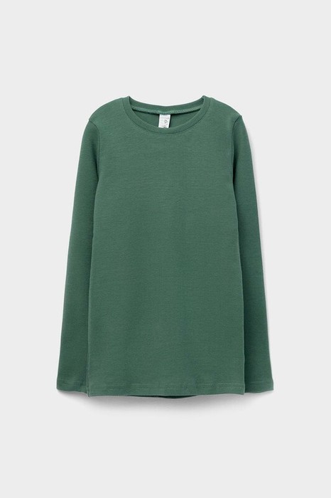 Однотонный джемпер с длинными рукавами. Сшит из высококачественной эластичной рибаны с начёсом. Эластан в составе позволяет изделию быть более эластичным и дольше сохранять опрятный внешний вид. Обтачка горловины выполнена из основного материала.