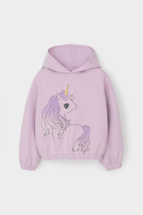 Худи с капюшоном для девочки из мягкого петельчатого футера. На рукавах и по низу изделия эластичные манжеты и пояс на резинке. Принт выполнен из стойких текстильных гипоаллергенных красителей.