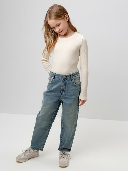 Базовый джемпер для девочки с длинными втачными рукавами из эластичного трикотажа кашкорсе. Изделие сохраняет цвет и форму после многократных стирок.