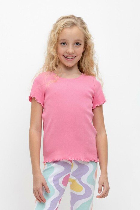 Футболка для девочки из эластичного трикотажа в рубчик.