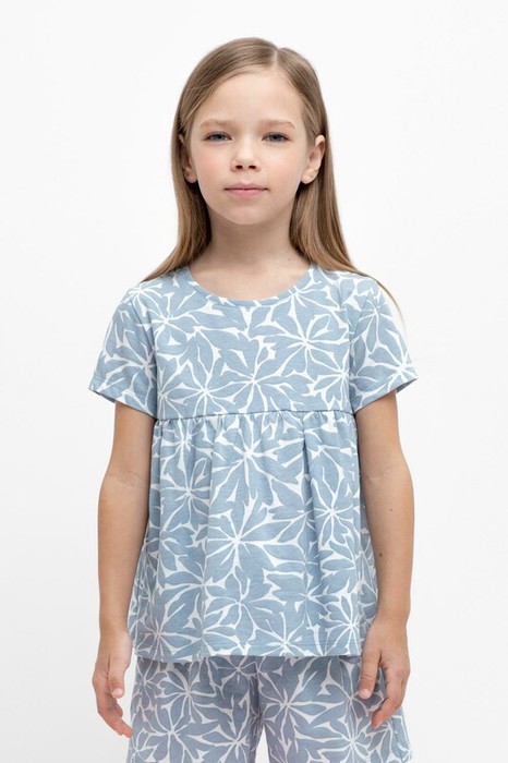 Футболка с кокеткой для девочки из высококачественного набивного трикотажного полотна. Оригинальная набивка выполнена из стойких текстильных красителей