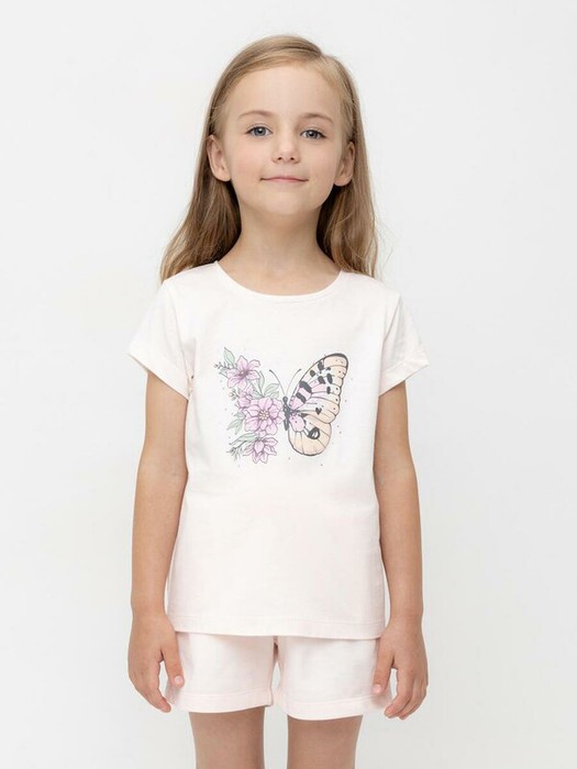 Футболка для девочки из гладкого трикотажа, произведённого из высококачественного натурального хлопка. Для удобства одевания имеется застежка на кнопки в размерах 92 и 98. Оригинальный принт выполнен из стойких текстильных гипоаллергенных красителей и украшен стразами. Изделие сохраняет цвет и форму после многократных стирок.