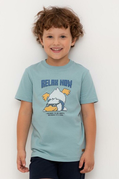 Футболка для мальчика из высококачественного трикотажного полотна. Оригинальный принт выполнен из стойких текстильных гипоаллергенных красителей. Для удобства в 92 и 98 размерах на плече застежка на кнопки.