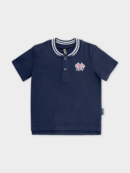 Поло с вышивкой для мальчика. Изготовлено из высококачественного трикотажного полотна пике. У изделия вязаный воротник и застежка спереди на две пуговицы.