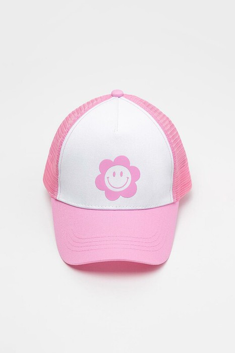 Кепка для девочки из текстиля и сетки. Спереди оригинальная рельефная печать. Регулируется по ширине и фиксируется на затылке с помощью пластиковой застежки.