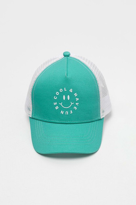 Кепка для мальчика из текстиля и сетки. Спереди оригинальный принт. Регулируется по ширине и фиксируется на затылке с помощью пластиковой застежки.