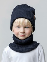 Комплект детский: шапка и снуд из полушерсти. Тёплая шапка с отворотом, украшена нашивкой из искусственной кожи. Снуд без оборотов вокруг шеи. Изделие сохраняет форму и стойкий цвет после многочисленных стирок.