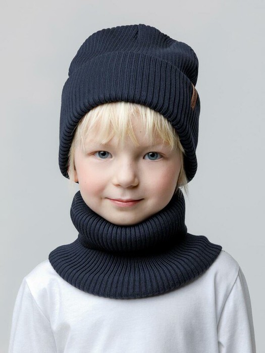 Комплект демисезонный из шапки с отворотом и снуда. Связан из высококачественного хлопка и выполнен переплетением ластик. Комфортно прилегает, обеспечивая защиту от холода и хороший теплообмен. Изделия хорошо переносят многократные стирки, сохраняя цвет и форму.