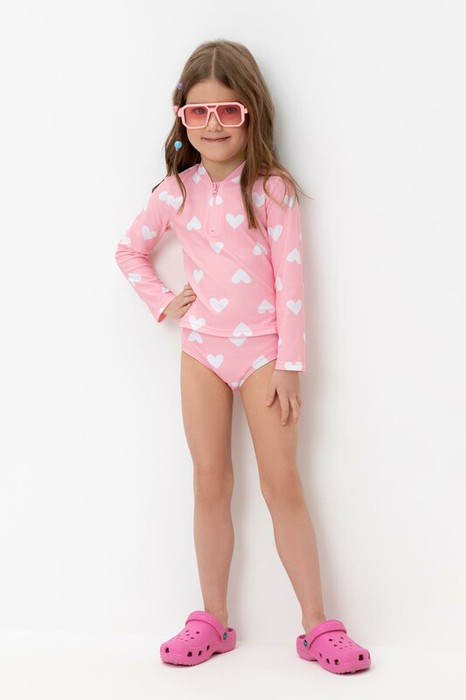 Купальный костюм для девочки. Верхняя часть застегивается на молнию. Оригинальная набивка выполнена из стойких гипоаллергенных красителей.