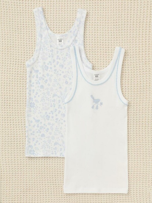 Трикотажные майки в комплекте 2 шт на лямках из натурального хлопка. Оригинальные набивка и принт выполнены из стойких, гипоаллергенных текстильных красителей. Изделие сохраняет цвет и форму после многократных стирок. Все трикотажные полотна производятся в соответсвии с нормами Швейцарского сертификата ЭкоТекс.