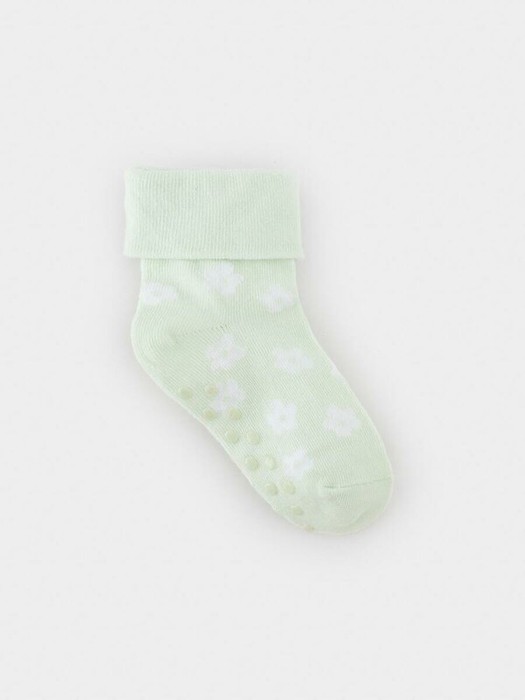 Носки детские с формованной пяткой и отворотом. Украшены рисунком. На стопе противоскользящие стопперы. Изделие сохраняет форму и стойкий цвет после многочисленных стирок.