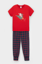 Трикотажная пижама из натурального хлопка. Джемпер с длинными втачными рукавами и брюки с эластичной резинкой в поясе. Мягкие манжеты на рукавах и по низу брюк. Оригинальная набивка выполнена из стойких текстильных гипоаллергенных красителей. Изделие сохраняет цвет и форму после многократных стирок. Все трикотажные полотна производятся в соответствии с нормами швейцарского сертификата ЭкоТекс.
