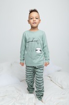 Трикотажная пижама из натурального хлопка. Джемпер с длинными втачными рукавами и брюки с эластичной резинкой в поясе. Мягкие манжеты по низу брюк. Оригинальная набивка выполнена из стойких гипоаллергенных текстильных гипоаллергенных красителей. Изделие сохраняет цвет и форму после многократных стирок. Все трикотажные полотна производятся в соответсвии с нормами швейцарского сертификата ЭкоТекс.